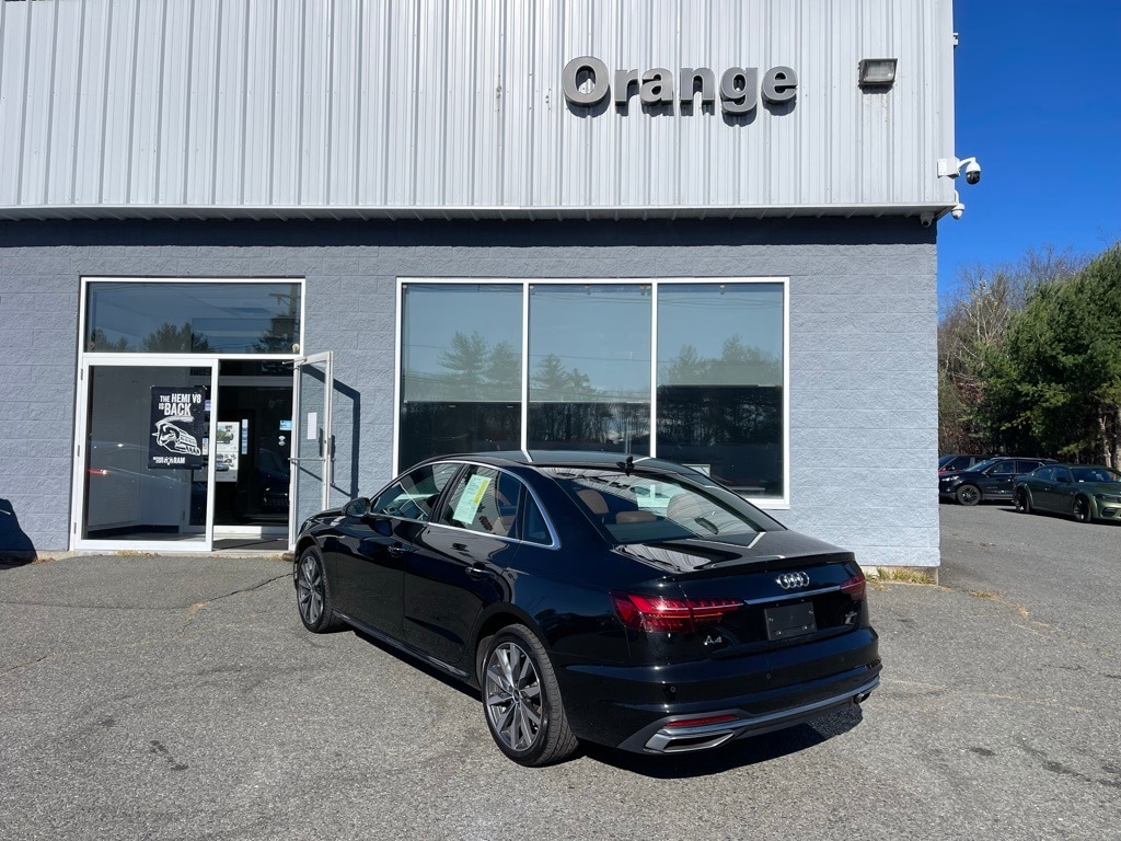 Orange Chrysler Jeep, Dodge, Ram is proud to present you with another True Market Priced Pre-Owned Vehicle. This 2022 Audi A4 40 Premium quattro is loaded with the following Factory Options: 7-Speed Automatic S tronic, quattro, and Leather 7-Speed Automatic S tronic, quattro, Leather, 10 Speakers, 4-Wheel Disc Brakes, ABS brakes, Air Conditioning, Alloy wheels, AM/FM radio, Anti-whiplash front head restraints, Audi smartphone interface (Apple CarPlay/Android Auto), Auto High-beam Headlights, Auto-dimming Rear-View mirror, Automatic temperature control, Brake assist, Bumpers: body-color, Compass, Delay-off headlights, Driver door bin, Driver vanity mirror, Dual front impact airbags, Dual front side impact airbags, Electronic Stability Control, Emergency communication system: Audi connect CARE, Exterior Parking Camera Rear, Four wheel independent suspension, Front anti-roll bar, Front Bucket Seats, Front Center Armrest, Front dual zone A/C, Front fog lights, Front reading lights, Garage door transmitter: HomeLink, Genuine wood dashboard insert, Genuine wood door panel insert, Heated door mirrors, Heated Front Bucket Seats, Heated front seats, Illuminated entry, Knee airbag, Leather Seating Surfaces, Leather Shift Knob, Leather steering wheel, Low tire pressure warning, Occupant sensing airbag, Outside temperature display, Overhead airbag, Overhead console, Panic alarm, Passenger door bin, Passenger vanity mirror, Power door mirrors, Power driver seat, Power moonroof, Power passenger seat, Power steering, Power windows, Radio data system, Radio: Audi Sound System, Rain sensing wipers, Rear air conditioning, Rear anti-roll bar, Rear reading lights, Rear seat center armrest, Rear window defroster, Remote keyless entry, Speed control, Speed-sensing steering, Speed-Sensitive Wipers, Split folding rear seat, Steering wheel mounted audio controls, Tachometer, Telescoping steering wheel, Tilt steering wheel, Traction control, Trip computer, Turn signal indicator mirrors, Variably intermittent wipers, and Wheels: 17" 10-Spoke Design Forged!!