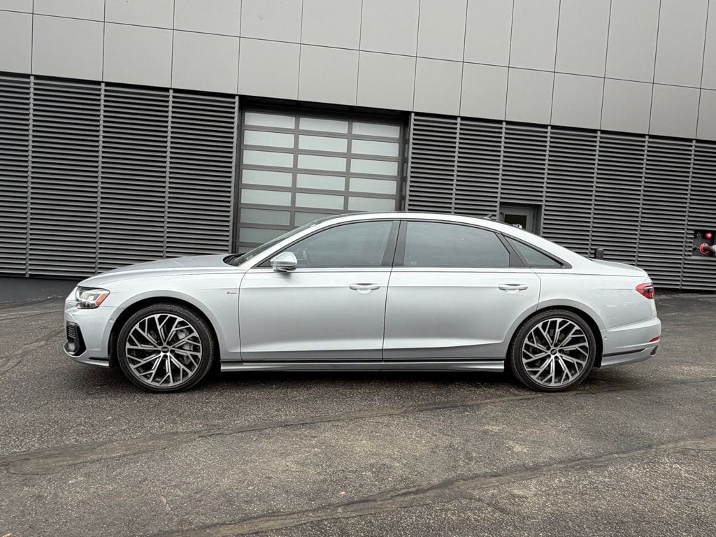 Orange Chrysler Jeep, Dodge, Ram is proud to present you with another True Market Priced Pre-Owned Vehicle. This 2022 Audi A8 L 55 quattro is loaded with the following Factory Options: Black Leather Black Optic Package (Wheels: 21" Audi Sport 10-Y-Spoke-Evo-Design), Contour/Ambient LED Interior Lighting Package, Executive Package (20" 10-Parallel-Spoke-Design Wheels, Alu-Optic Buttons, Audi Adaptive Cruise Assist w/Lane Guidance, Audi Side Assist, Heated Steering Wheel, Intersection Assist, and Traffic Sign Recognition), Black Leather, 17 Speakers, 22-Way Heated Multi-Contour Comfort Front Seats, 4-Wheel Disc Brakes, ABS brakes, Adaptive suspension, Air Conditioning, Alloy wheels, AM/FM radio: SiriusXM, Audi Black Rings & Badges, Audi Guard Protection Kit, Audi smartphone interface (Apple CarPlay/Android Auto), Auto High-beam Headlights, Auto tilt-away steering wheel, Auto-dimming door mirrors, Auto-dimming Rear-View mirror, Auto-leveling suspension, Automatic temperature control, Bang & Olufsen Sound System w/3D Sound, Black Cloth Headliner, Brake assist, Bumpers: body-color, Compass, Delay-off headlights, Delete Front License Plate Holder, Door auto-latch, Driver door bin, Driver vanity mirror, Dual front impact airbags, Dual front side impact airbags, Electronic Stability Control, Emergency communication system, Fine Grain Ash Natural Wood Gray-Brown Inlays, Four wheel independent suspension, Front anti-roll bar, Front Bucket Seats, Front Center Armrest w/Storage, Front dual zone A/C, Front fog lights, Front reading lights, Garage door transmitter: HomeLink, Genuine wood door panel insert, Head restraints memory, Headlight cleaning, Heated door mirrors, Heated front seats, HVAC memory, Illuminated entry, Knee airbag, Leather Shift Knob, Leather steering wheel, Low tire pressure warning, Memory seat, Navigation system: MMI Navigation plus, Occupant sensing airbag, Outside temperature display, Overhead airbag, Overhead console, Panic alarm, Passenger door bin, Passenger vanity mirror, Power 2nd-Row Moonroof, Power adjustable front head restraints, Power door mirrors, Power driver seat, Power moonroof, Power passenger seat, Power steering, Power windows, Radio data system, Radio: Audi MMI Navigation Plus, Rain sensing wipers, Rear air conditioning, Rear anti-roll bar, Rear dual zone A/C, Rear fog lights, Rear reading lights, Rear seat center armrest, Rear side impact airbag, Rear Window Blind, Rear window defroster, Remote keyless entry, Seatbelt memory, Security system, Speed control, Speed-sensing steering, Speed-Sensitive Wipers, Steering wheel memory, Steering wheel mounted audio controls, Tachometer, Telescoping steering wheel, Tilt steering wheel, Traction control, Trip computer, Turn signal indicator mirrors, Valetta Leather Seat Upholstery, Variably intermittent wipers, Ventilated front seats, and Wheels: 19" 15-Spoke Design!!