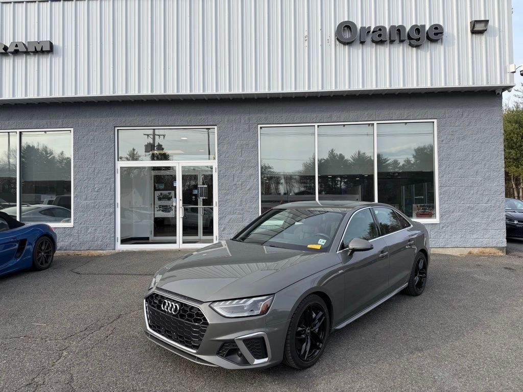 Orange Chrysler Jeep, Dodge, Ram is proud to present you with another True Market Priced Pre-Owned Vehicle. This 2023 Audi A4 45 S line Premium Plus quattro is loaded with the following Factory Options: 7-Speed Automatic S tronic, quattro, and Black Leather 7-Speed Automatic S tronic, quattro, Black Leather, 10 Speakers, 4-Wheel Disc Brakes, ABS brakes, Air Conditioning, Alloy wheels, AM/FM radio, Anti-whiplash front head restraints, Audi smartphone interface (Apple CarPlay/Android Auto), Auto High-beam Headlights, Auto-dimming Rear-View mirror, Automatic temperature control, Brake assist, Bumpers: body-color, Compass, Delay-off headlights, Driver door bin, Driver vanity mirror, Dual front impact airbags, Dual front side impact airbags, Electronic Stability Control, Emergency communication system: Audi connect CARE, Exterior Parking Camera Rear, Four wheel independent suspension, Front anti-roll bar, Front Bucket Seats, Front Center Armrest, Front dual zone A/C, Front fog lights, Front reading lights, Garage door transmitter: HomeLink, Genuine wood dashboard insert, Genuine wood door panel insert, Heated door mirrors, Heated front seats, Heated Front Sport Bucket Seats, Illuminated entry, Knee airbag, Leather Seating Surfaces, Leather Shift Knob, Leather steering wheel, Low tire pressure warning, Occupant sensing airbag, Outside temperature display, Overhead airbag, Overhead console, Panic alarm, Passenger door bin, Passenger vanity mirror, Power door mirrors, Power driver seat, Power moonroof, Power passenger seat, Power steering, Power windows, Radio data system, Radio: Audi Sound System, Rain sensing wipers, Rear air conditioning, Rear anti-roll bar, Rear reading lights, Rear seat center armrest, Rear window defroster, Remote keyless entry, Speed control, Speed-sensing steering, Speed-Sensitive Wipers, Split folding rear seat, Steering wheel mounted audio controls, Tachometer, Telescoping steering wheel, Tilt steering wheel, Traction control, Trip computer, Turn signal indicator mirrors, Variably intermittent wipers, and Wheels: 18" 5-Double-Spoke Design!!