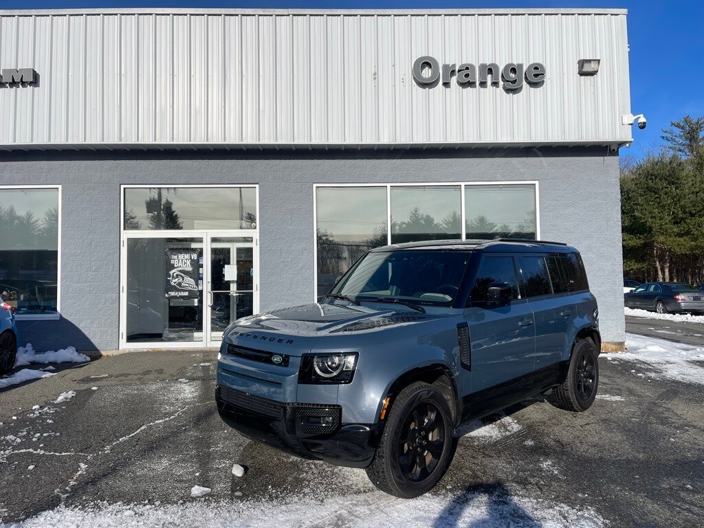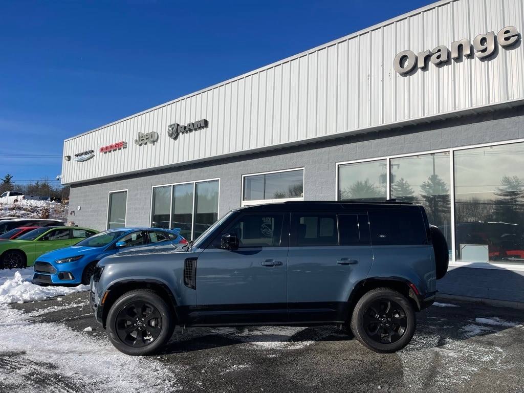 Orange Chrysler Jeep, Dodge, Ram is proud to present you with another True Market Priced Pre-Owned Vehicle. This 2022 Land Rover Defender 110 X-Dynamic HSE is loaded with the following Factory Options: Advanced Off-Road Capability Package, Air Suspension Pack, Extended Black Exterior Pack (Gloss Black Front Grille), Family Comfort Pack (3-Zone Climate Control, Air Quality Sensor, Cabin Air Ionization, and Manual Heated 3rd Row Seats), Family Pack (Manual 3rd Row Seats), Smoker's Package, Towing Pack (Advanced Tow Assist and Tow Hitch Receiver), 11.4" Touchscreen, 14-Way Heated & Cooled Electric Memory Seats, 15 Speakers, 16 Way Climate Front Row Seats, 3.55 Axle Ratio, 4-Wheel Disc Brakes, ABS brakes, Active Cruise Control, Activity Key, Air Conditioning, Alloy wheels, AM/FM radio: SiriusXM, Appearance Pack, Apple CarPlay & Android Auto, Auto High-beam Headlights, Auto tilt-away steering wheel, Auto-dimming door mirrors, Auto-dimming Rear-View mirror, Automatic temperature control, Basic Interior Protection & Storage Pack (5 Seat), Basic Interior Protection & Storage Pack (5+2 Seat), Basic Rear Seat Convenience Pack, Black Contrast Roof, Black Signature Graphic (DISC), Brake assist, Bumpers: body-color, ClearSight Interior Rear View Mirror, Climate Rear Seats w/Center Armrest, Cold Climate Pack, Comfort & Convenience Pack, Compass, Delay-off headlights, Deployable Side Steps, Domestic Plug Socket, Driver door bin, Driver vanity mirror, Dual front impact airbags, Dual front side impact airbags, Electronic Active Differential, Electronic Stability Control, Emergency Pack, Exterior Protection Pack, Four wheel independent suspension, Front anti-roll bar, Front Bucket Seats, Front Center Armrest, Front dual zone A/C, Front fog lights, Front reading lights, Fully automatic headlights, Garage door transmitter: HomeLink, Head-Up Display, Headlight Power Wash, Heated door mirrors, Heated front seats, Heated Rear Seats w/Center Armrest, Heated Steering Wheel, Heated Washer Jets, Heated Windscreen, Illuminated entry, Leather Shift Knob, Leather steering wheel, Light Oyster Morzine Headlining, Locking Wheel Nuts, Low tire pressure warning, Matte Black Hood Decal, Memory seat, Navigation System, Navigation system: Connected Navigation PIVI Pro, Occupant sensing airbag, Off-Road Pack, Off-Road Tires, Outside temperature display, Overhead airbag, Overhead console, Panic alarm, Passenger door bin, Passenger vanity mirror, Power door mirrors, Power driver seat, Power moonroof, Power passenger seat, Power steering, Power windows, Premium Cabin Lighting, Premium Interior Protection & Storage Pack (5 Seat), Radio data system, Radio: 825W 15 Speaker Meridian Surround Sound Sys, Rain sensing wipers, Rear anti-roll bar, Rear fog lights, Rear reading lights, Rear seat center armrest, Rear window defroster, Rear window wiper, Refrigerated Center Console, Remote keyless entry, Roof rack: rails only, Satin Protective Film, Security system, Speed control, Speed-sensing steering, Speed-Sensitive Wipers, Split folding rear seat, Steering wheel memory, Steering wheel mounted audio controls, Tachometer, Telescoping steering wheel, Tilt steering wheel, Traction control, Trip computer, Variably intermittent wipers, Ventilated front seats, Weather band radio, Wheels: 20" Satin Dark Gray Finish Style 5098, Wi-Fi Enabled w/D